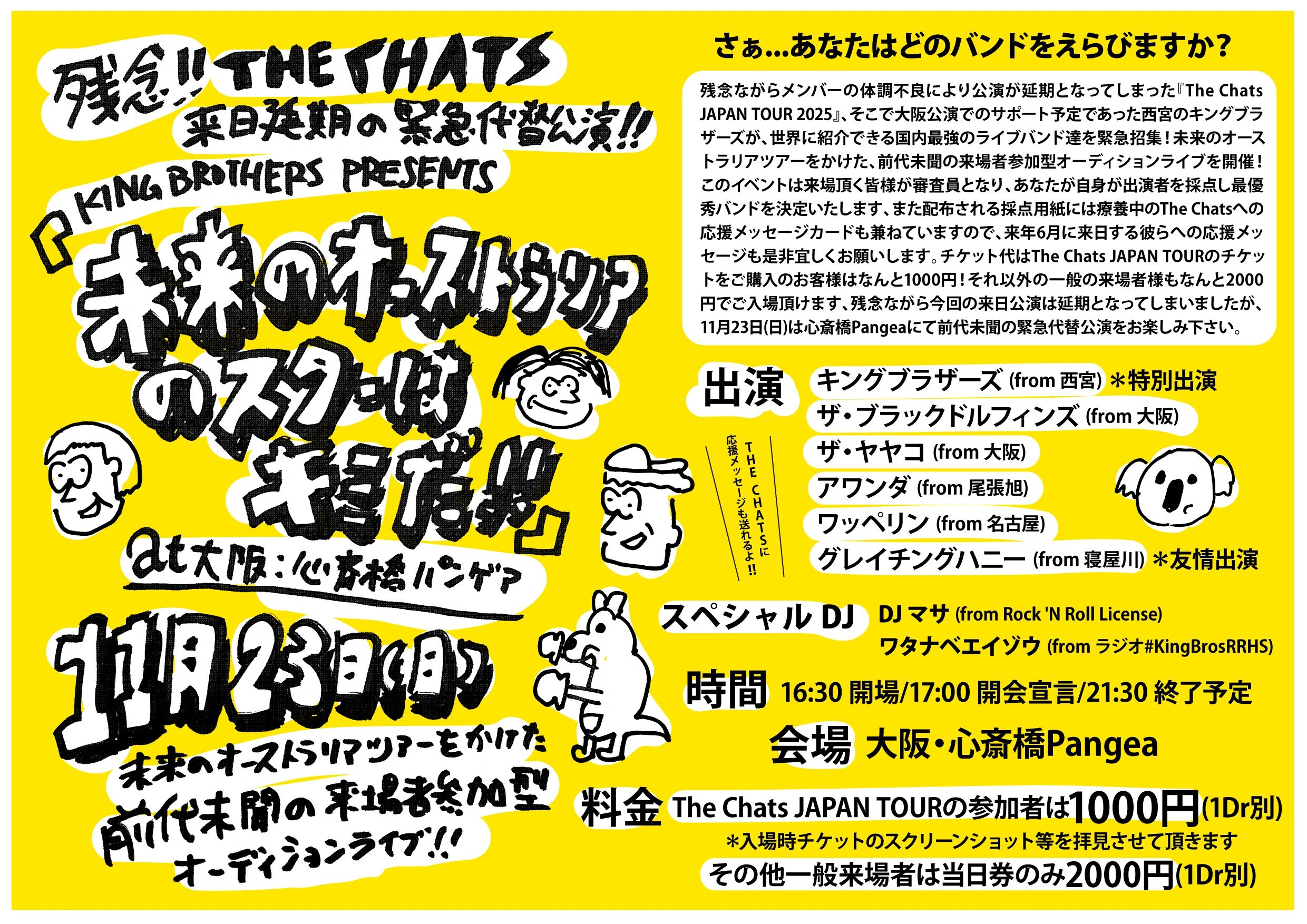 Ticket: ¥1,000 (plus 1 drink) for The Chats Japan Tour ticket holders